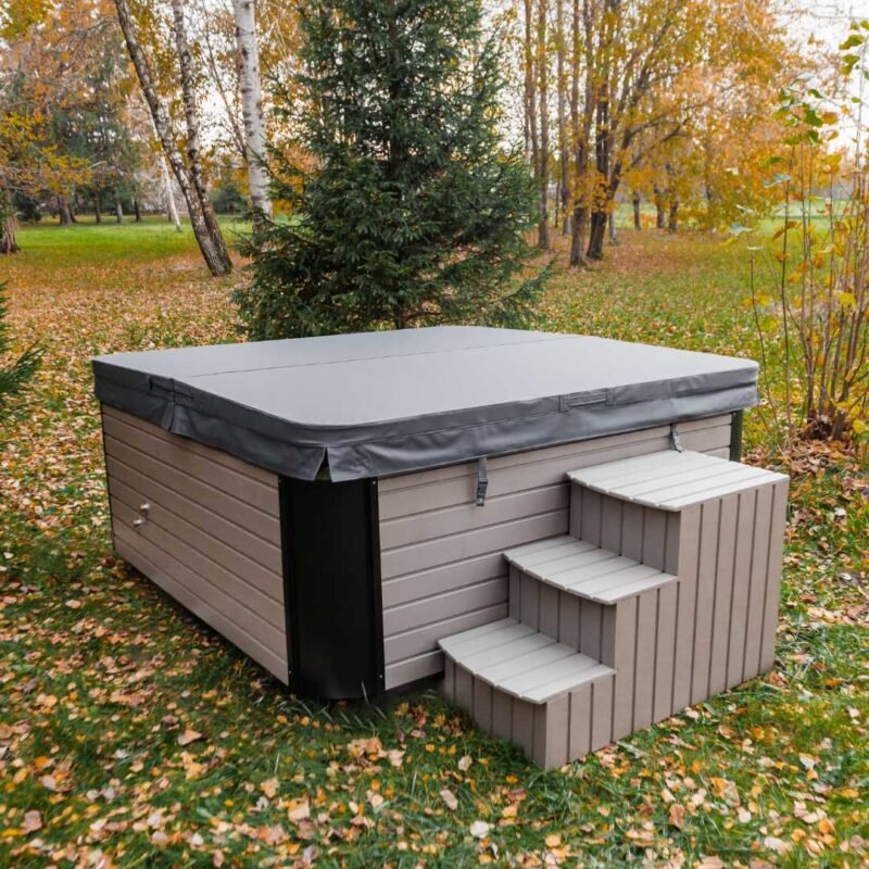 Fiberglass hot tub with an integrated heater in the stairs/terrace – Spruce wood