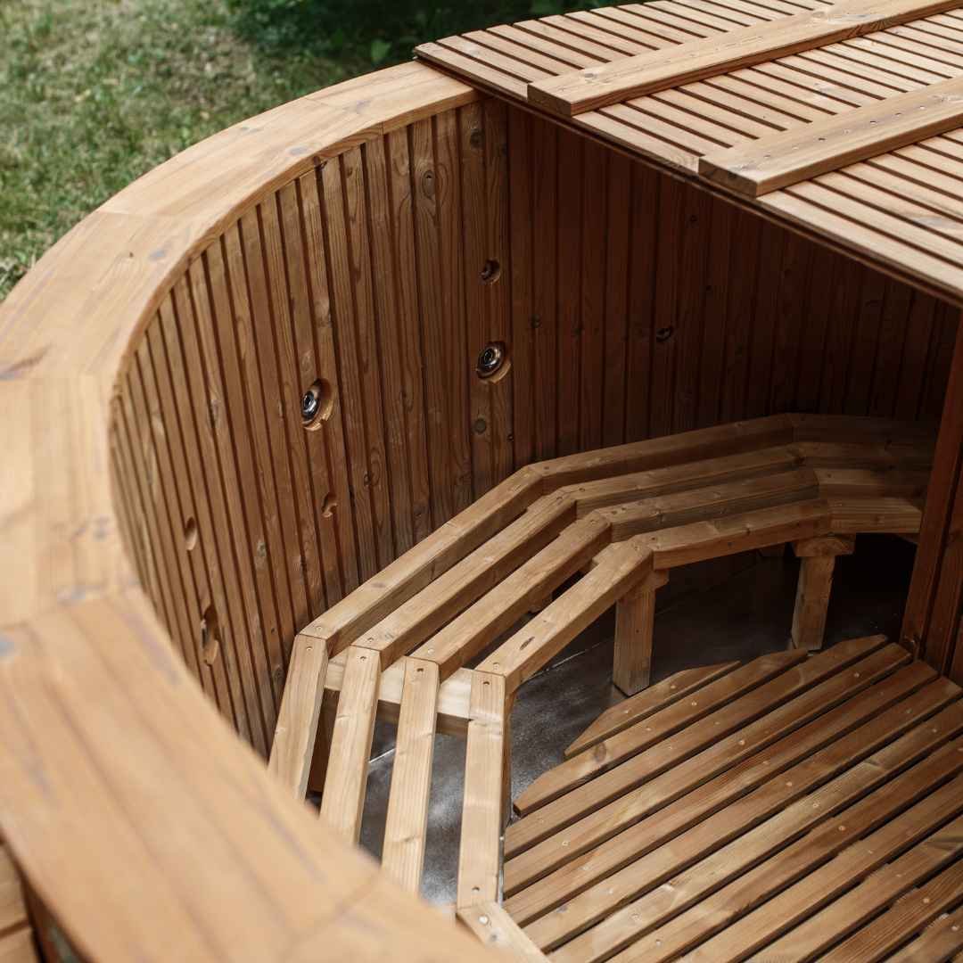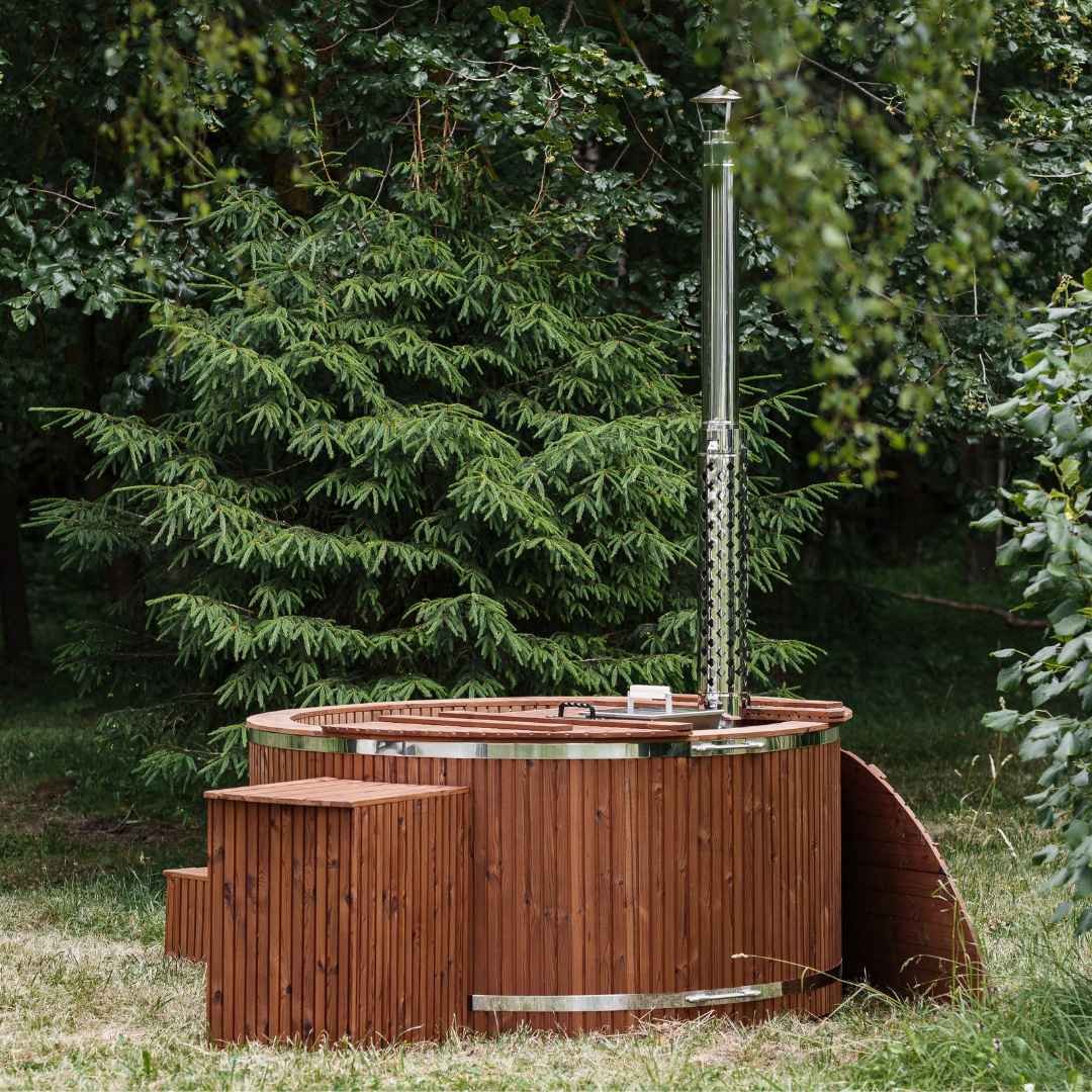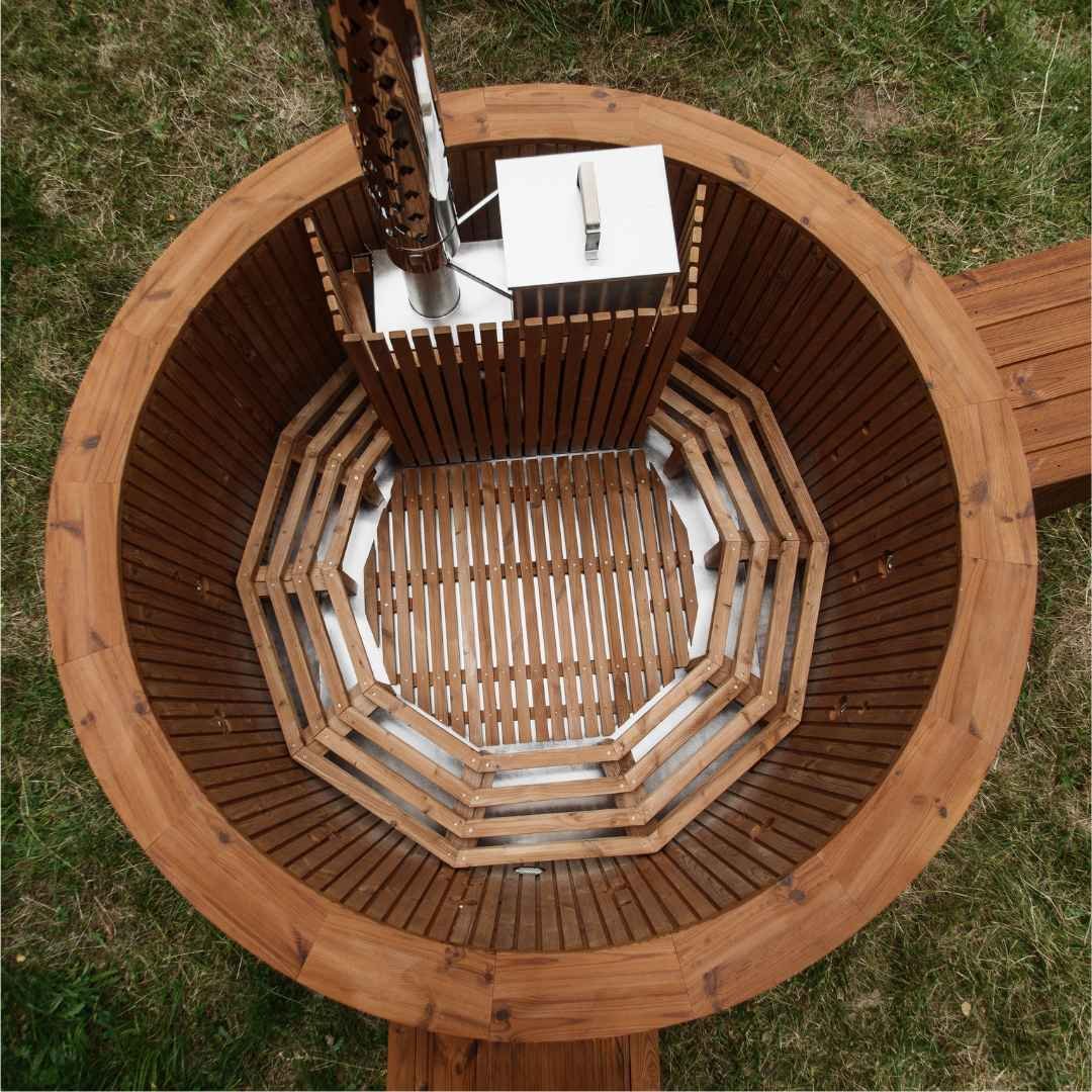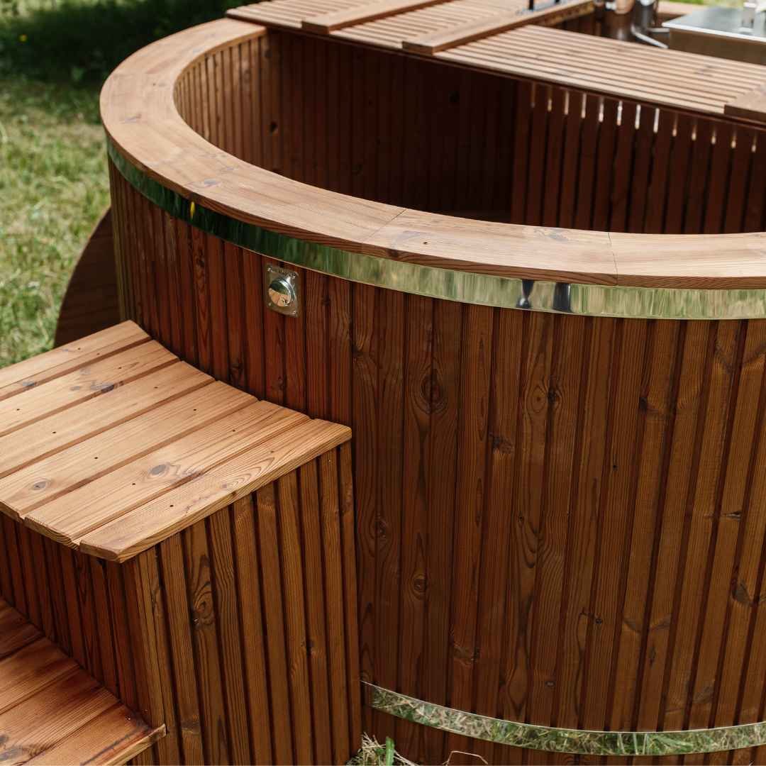 Fiberglass hot tub with an integrated heater in the stairs/terrace – Spruce wood